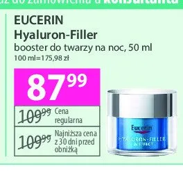 Cena produktu r贸偶ni si臋 w zale偶no艣ci od wybranego sklepu. Niestety nie posiadamy danych o aktualnych promocjach, jednak w艣r贸d archiwalnych ofert Krem do twarzy na noc Eucerin hyaluron filler +3x effect kosztuje od 87,99 z艂.