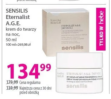 Ile kosztuje Krem do twarzy na noc Sensilis eternalist a.g.e.?