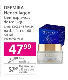 Cena produktu r贸偶ni si臋 w zale偶no艣ci od wybranego sklepu. Niestety nie posiadamy danych o aktualnych promocjach, jednak w艣r贸d archiwalnych ofert Krem do twarzy naprawczy 60+ Dermika kosztuje od 43,99 z艂 do 47,99 z艂.