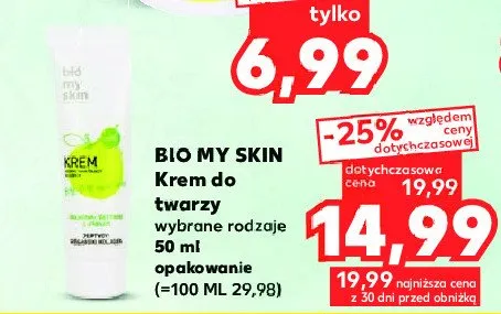 Cena produktu różni się w zależności od wybranego sklepu. Niestety nie posiadamy danych o aktualnych promocjach, jednak wśród archiwalnych ofert Krem do twarzy nawilżająco-odżywczy na dzień BIO MY SKIN kosztuje od 18,44 zł do 43,99 zł.