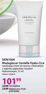 Cena produktu różni się w zależności od wybranego sklepu. Niestety nie posiadamy danych o aktualnych promocjach, jednak wśród archiwalnych ofert Krem do twarzy nawilżający z wąkrotą azjatycką Skin1004 madagascar centella kosztuje od 101,99 zł.