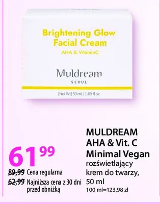 Cena produktu r贸偶ni si臋 w zale偶no艣ci od wybranego sklepu. Niestety nie posiadamy danych o aktualnych promocjach, jednak w艣r贸d archiwalnych ofert Krem do twarzy roz艣wietlaj膮cy Muldream kosztuje od 61,99 z艂.