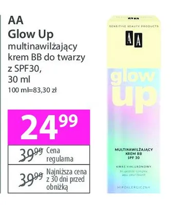 Ile kosztuje Krem do twarzy roz艣wietlaj膮cy na dzie艅 spf30 Aa glow up?