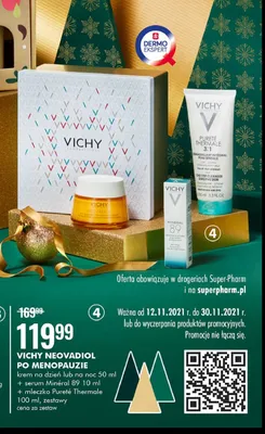 Cena produktu r贸偶ni si臋 w zale偶no艣ci od wybranego sklepu. Niestety nie posiadamy danych o aktualnych promocjach, jednak w艣r贸d archiwalnych ofert Krem do twarzy + serum + purete tharmale 3w1 Vichy neovadiol gf kosztuje od 119,99 z艂.