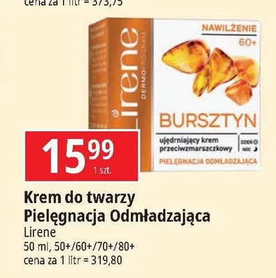 Ile kosztuje Krem do twarzy uj臋drniaj膮cy na dzie艅 i noc Lirene bursztynowa odbudowa 60+?