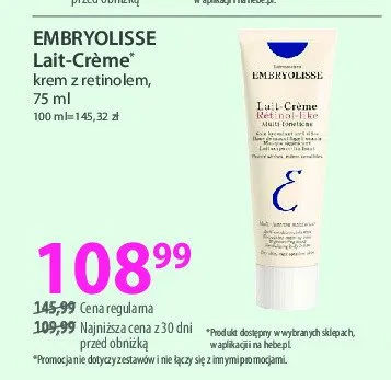 Przegl膮daj podobne oferty promocyjne do Krem do twarzy z retinolem lait Embryolisse!
