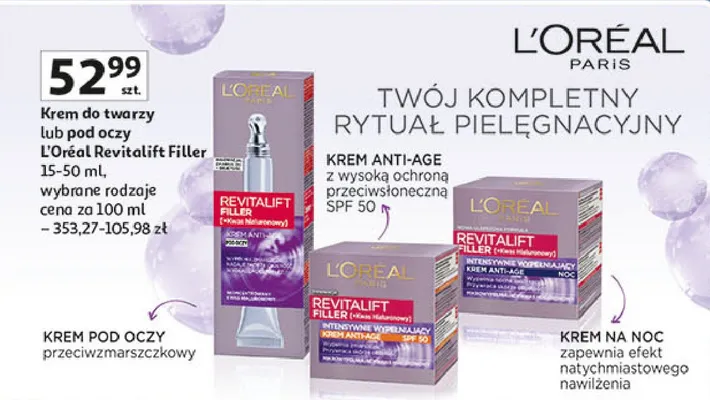 Ile kosztuje Krem intensywnie wype艂niaj膮cy spf50 L'oreal revitalift filler [kwas hialuronowy]?