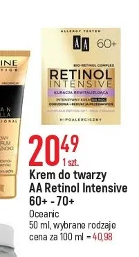 Ile kosztuje Krem intensywny na noc 60+ Aa retinol intensive?