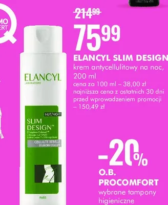 Cena produktu r贸偶ni si臋 w zale偶no艣ci od wybranego sklepu. Niestety nie posiadamy danych o aktualnych promocjach, jednak w艣r贸d archiwalnych ofert Krem na noc intensywna piel臋gnacja wyszczuplaj膮ca Elancyl slim design kosztuje od 75,99 z艂.