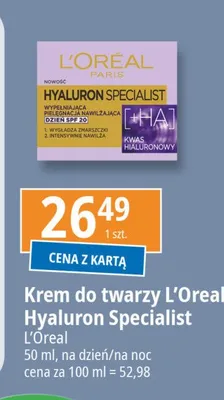 Cena produktu różni się w zależności od wybranego sklepu. Niestety nie posiadamy danych o aktualnych promocjach, jednak wśród archiwalnych ofert Krem nawiliżający na noc L'oreal hyaluron specialist kosztuje od 20,99 zł do 25,99 zł.