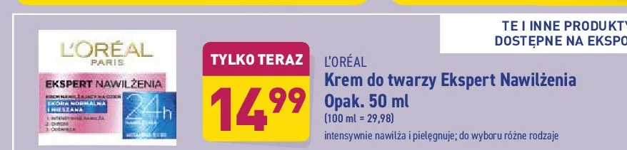 Przeglądaj podobne oferty promocyjne do Krem nawilżający na dzień skóra normalna i mieszana L'oreal ekspert nawilżenia 24h!