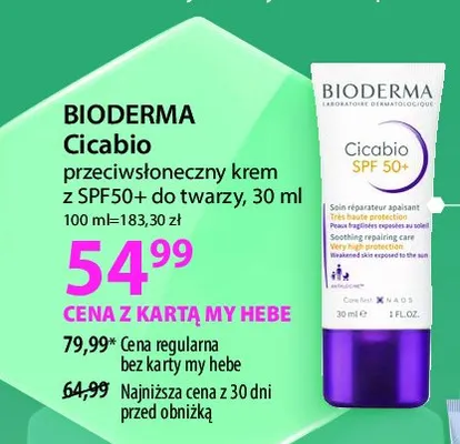 Cena produktu r贸偶ni si臋 w zale偶no艣ci od wybranego sklepu. Niestety nie posiadamy danych o aktualnych promocjach, jednak w艣r贸d archiwalnych ofert Krem ochronny spf50 BIODERMA CICABIO kosztuje od 54,99 z艂.