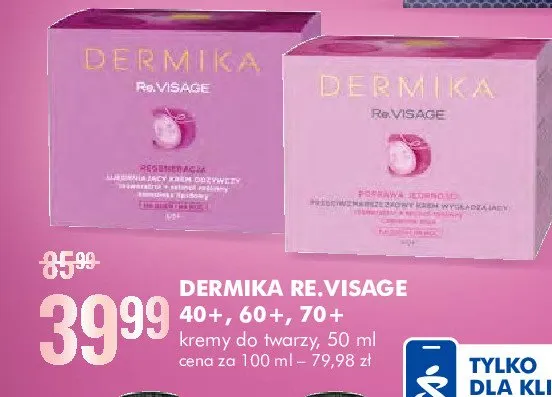 Cena produktu różni się w zależności od wybranego sklepu. Niestety nie posiadamy danych o aktualnych promocjach, jednak wśród archiwalnych ofert Krem odżywczy 60+ na dzień i noc Dermika revisage kosztuje od 39,99 zł do 50,99 zł.