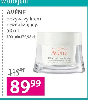 Cena produktu różni się w zależności od wybranego sklepu. Niestety nie posiadamy danych o aktualnych promocjach, jednak wśród archiwalnych ofert Krem odżywczy rewitalizujący Avene les essentiels kosztuje od 89,99 zł.
