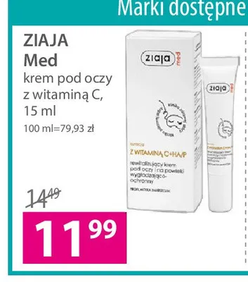 Cena produktu r贸偶ni si臋 w zale偶no艣ci od wybranego sklepu. Niestety nie posiadamy danych o aktualnych promocjach, jednak w艣r贸d archiwalnych ofert Krem pod oczy ZIAJA MED LIPIDOWA kosztuje od 11,99 z艂.