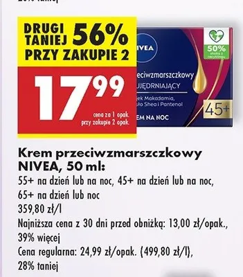 Ile kosztuje Krem przeciwzmarszczkowy + uj臋drniaj膮cy z olejkiem z pestek moreli 45+ na noc Nivea?
