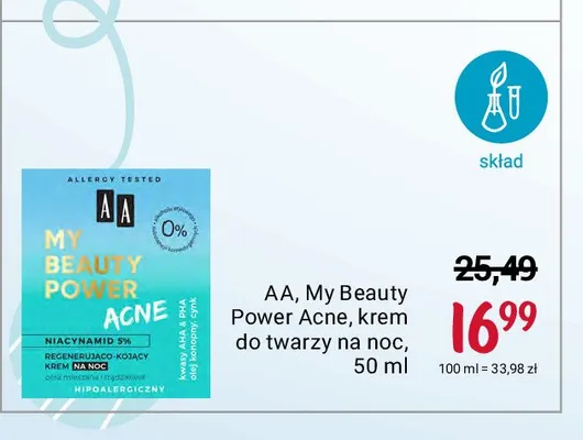 Ile kosztuje Krem regeneruuj膮cy na noc AA MY BEAUTY POWER ACNE?