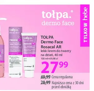 Cena produktu różni się w zależności od wybranego sklepu. Niestety nie posiadamy danych o aktualnych promocjach, jednak wśród archiwalnych ofert Krem wzmacniająco-łagodzący Tołpa: dermo face, rosacal kosztuje od 27,99 zł.