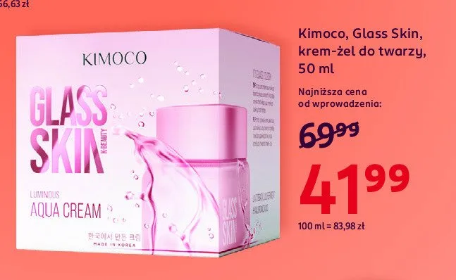 Cena produktu r贸偶ni si臋 w zale偶no艣ci od wybranego sklepu. Niestety nie posiadamy danych o aktualnych promocjach, jednak w艣r贸d archiwalnych ofert Krem-偶el do twarzy Kimoco beauty kosztuje od 41,99 z艂.