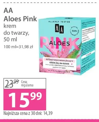 Krem-żel intensywnie nawilżający do twarzy Aa aloes pink promocje w sklepach - znajdź ofertę dla siebie!