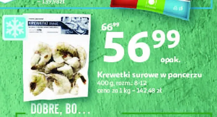 Cena produktu r贸偶ni si臋 w zale偶no艣ci od wybranego sklepu. Niestety nie posiadamy danych o aktualnych promocjach, jednak w艣r贸d archiwalnych ofert Krewetki bia艂e surowe 8-12 kosztuje od 56,99 z艂.