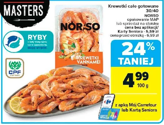 Krewetki ca艂e gotowane Norso promocje w sklepach - znajd藕 ofert臋 dla siebie!