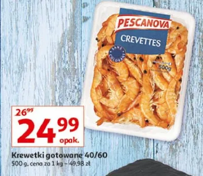 Cena produktu r贸偶ni si臋 w zale偶no艣ci od wybranego sklepu. Niestety nie posiadamy danych o aktualnych promocjach, jednak w艣r贸d archiwalnych ofert Krewetki gotowane 40/60 kosztuje od 24,99 z艂.