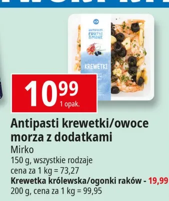 Cena produktu r贸偶ni si臋 w zale偶no艣ci od wybranego sklepu. Niestety nie posiadamy danych o aktualnych promocjach, jednak w艣r贸d archiwalnych ofert Krewetki w zalewie Mirko kosztuje od 19,99 z艂.
