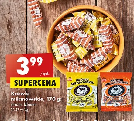 Nie wiesz gdzie kupi膰 produkt Kr贸wki mleczne Milan贸wek w promocji? Aktualnie produkt Kr贸wki mleczne Milan贸wek znajduje si臋 w atrakcyjnej cenie w sklepach Carrefour Market. Opr贸cz tego produkt mo偶na kupi膰 w innych sklepach, jednak aktulanie nie posiadamy informacji o promocjach w nich.