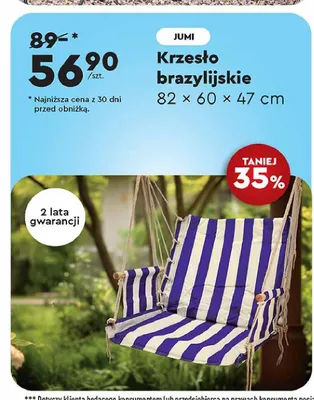 Zastanawiasz si臋, gdzie kupi膰 i ile kosztuje produkt Krzes艂o brazylijskie z fr臋dzlami Jumi? Regularnie sprawdzamy, czy jest promocja na ten produkt w Biedronka, Lidl, Kaufland, Auchan, Netto, Makro i innych sklepach. Aktualnie posiadamy 2 oferty promocyjne na ten produkt. Ceny zaczynaj膮 si臋 od 120,00z艂!