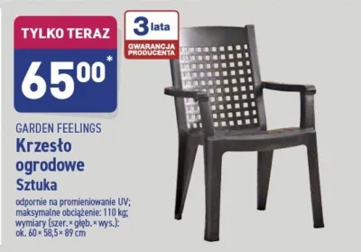 Cena produktu r贸偶ni si臋 w zale偶no艣ci od wybranego sklepu. Niestety nie posiadamy danych o aktualnych promocjach, jednak w艣r贸d archiwalnych ofert Krzes艂o ogrodowe 60 x 58.5 x 89 cm Garden feelings kosztuje od 65 z艂.