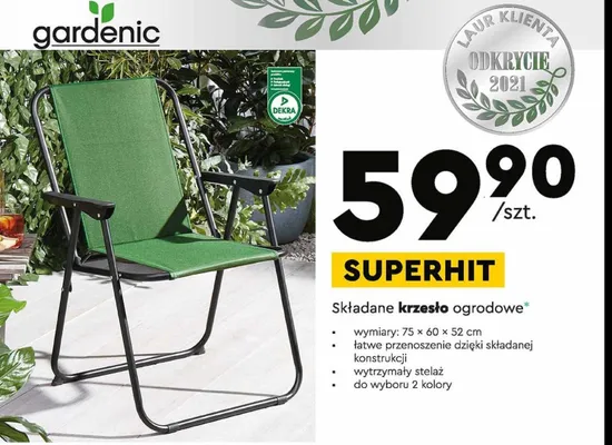Krzes艂o ogrodowe 75 x 60 x 52 cm Gardenic aktualnie nie wyst臋puje w bazie naszych gazetek promocyjnych. Nie martw si臋! Gdy tylko pojawi si臋 ciekawa promocja na Krzes艂o ogrodowe 75 x 60 x 52 cm Gardenic, umie艣cimy j膮 na naszej stronie