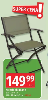 Cena produktu r贸偶ni si臋 w zale偶no艣ci od wybranego sklepu. Niestety nie posiadamy danych o aktualnych promocjach, jednak w艣r贸d archiwalnych ofert Krzes艂o sk艂adane 85 x 52 x 46 cm kosztuje od 149,99 z艂.