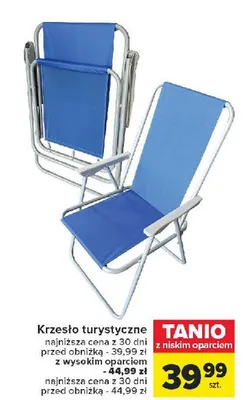 Zastanawiasz si臋, gdzie kupi膰 i ile kosztuje produkt Krzes艂o turystyczne sk艂adane niskie oparcie kolor? Regularnie sprawdzamy, czy jest promocja na ten produkt w Biedronka, Lidl, Kaufland, Auchan, Netto, Makro i innych sklepach. Aktualnie posiadamy 3 oferty promocyjne na ten produkt. Ceny zaczynaj膮 si臋 od 39,99z艂!