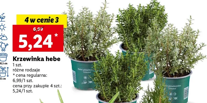 Zastanawiasz si臋, gdzie kupi膰 i ile kosztuje produkt Krzewinka hebe 10.5 cm? Regularnie sprawdzamy, czy jest promocja na ten produkt w Biedronka, Lidl, Kaufland, Auchan, Netto, Makro i innych sklepach. Aktualnie nie posiadamy ofert promocyjnych na ten produkt.
