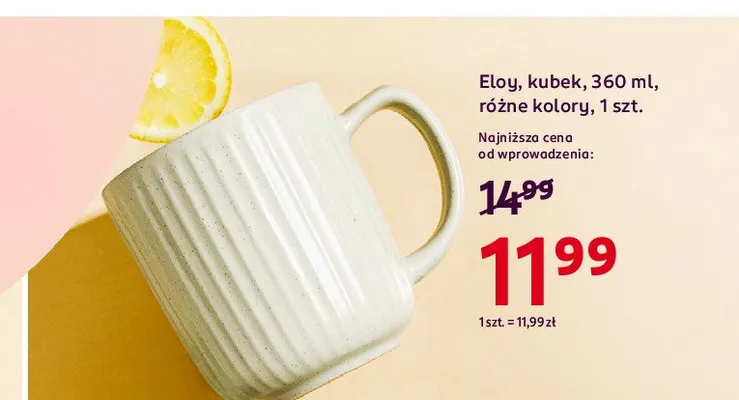 Cena produktu r贸偶ni si臋 w zale偶no艣ci od wybranego sklepu. Produkt Kubek 360 ml Eloy mo偶esz kupi膰 w promocji ju偶 od 6 z艂. Najta艅sza oferta, jak膮 mamy w naszej bazie jest z sieci Woolworth. Kubek 360 ml Eloy kosztuje aktualnie 6 z艂. Zobacz ofert臋