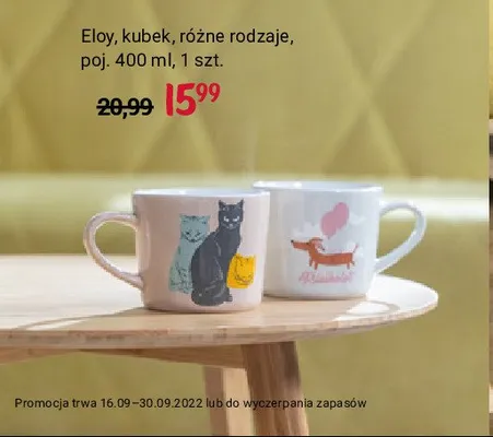 Cena produktu r贸偶ni si臋 w zale偶no艣ci od wybranego sklepu. Niestety nie posiadamy danych o aktualnych promocjach, jednak w艣r贸d archiwalnych ofert Kubek 400 ml zwierzaki Eloy kosztuje od 15,99 z艂.