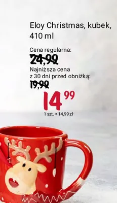 Cena produktu r贸偶ni si臋 w zale偶no艣ci od wybranego sklepu. Niestety nie posiadamy danych o aktualnych promocjach, jednak w艣r贸d archiwalnych ofert Kubek 410 ml Eloy christmas kosztuje od 14,99 z艂.