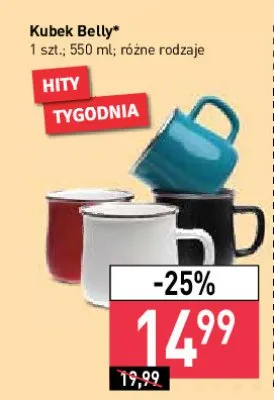 Cena produktu r贸偶ni si臋 w zale偶no艣ci od wybranego sklepu. Niestety nie posiadamy danych o aktualnych promocjach, jednak w艣r贸d archiwalnych ofert Kubek belly 550 ml kosztuje od 14,99 z艂.