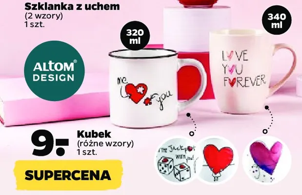 Cena produktu r贸偶ni si臋 w zale偶no艣ci od wybranego sklepu. Produkt Kubek porcelanowy 340 ml Altom design mo偶esz kupi膰 w promocji ju偶 od 9,99 z艂 do 11,49 z艂. Najta艅sza oferta, jak膮 mamy w naszej bazie jest z sieci Kaufland. Kubek porcelanowy 340 ml Altom design kosztuje aktualnie 9,99 z艂. Zobacz ofert臋