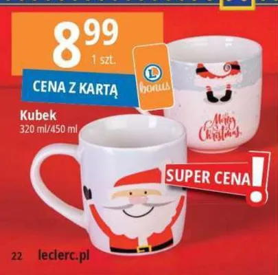 Cena produktu r贸偶ni si臋 w zale偶no艣ci od wybranego sklepu. Produkt Kubek 艣wi膮teczny 320 ml mo偶esz kupi膰 w promocji ju偶 od 6 z艂. Najta艅sza oferta, jak膮 mamy w naszej bazie jest z sieci Woolworth. Kubek 艣wi膮teczny 320 ml kosztuje aktualnie 6 z艂. Zobacz ofert臋