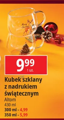 Cena produktu r贸偶ni si臋 w zale偶no艣ci od wybranego sklepu. Niestety nie posiadamy danych o aktualnych promocjach, jednak w艣r贸d archiwalnych ofert Kubek 艣wi膮teczny 430 ml Altom design kosztuje od 9,99 z艂.