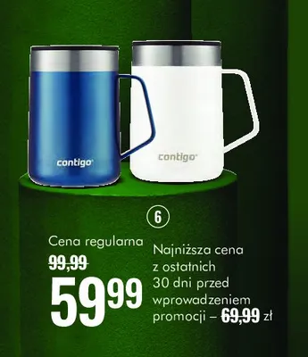 Cena produktu r贸偶ni si臋 w zale偶no艣ci od wybranego sklepu. Niestety nie posiadamy danych o aktualnych promocjach, jednak w艣r贸d archiwalnych ofert Kubek termiczny CONTIGO kosztuje od 59,99 z艂.