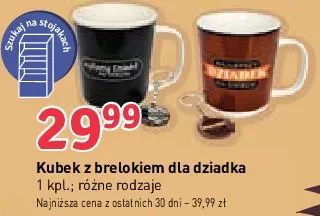 Cena produktu r贸偶ni si臋 w zale偶no艣ci od wybranego sklepu. Niestety nie posiadamy danych o aktualnych promocjach, jednak w艣r贸d archiwalnych ofert Kubek z brelokiem dla dziadka 420 ml kosztuje od 29,99 z艂.