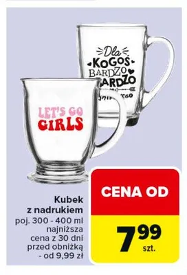 Cena produktu r贸偶ni si臋 w zale偶no艣ci od wybranego sklepu. Niestety nie posiadamy danych o aktualnych promocjach, jednak w艣r贸d archiwalnych ofert Kubek z nadrukiem kosztuje od 7,99 z艂 do 12,99 z艂.