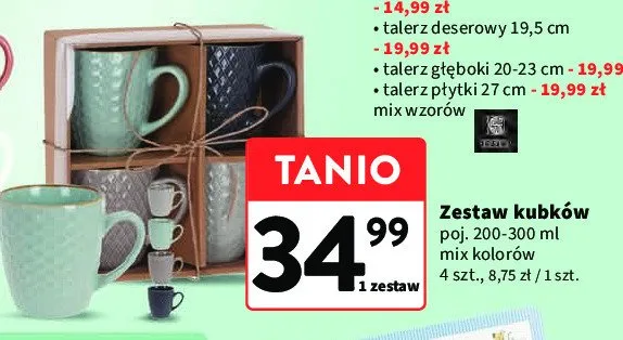 Cena produktu r贸偶ni si臋 w zale偶no艣ci od wybranego sklepu. Niestety nie posiadamy danych o aktualnych promocjach, jednak w艣r贸d archiwalnych ofert Kubki porcelanowe 200 ml kosztuje od 34,99 z艂.