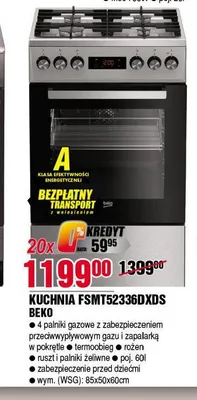 Kuchenka gazowo - elektryczna fsmt52336dxds Beko promocje w sklepach - znajd藕 ofert臋 dla siebie!