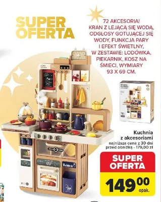 Cena produktu r贸偶ni si臋 w zale偶no艣ci od wybranego sklepu. Niestety nie posiadamy danych o aktualnych promocjach, jednak w艣r贸d archiwalnych ofert Kuchnia z akcesoriami kosztuje od 129 z艂 do 179 z艂.