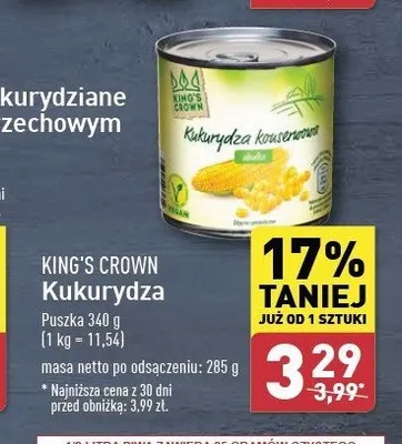Kukurydza konserwowa King's crown (aldi) promocje w sklepach - znajd藕 ofert臋 dla siebie!
