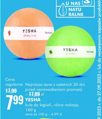 Cena produktu r贸偶ni si臋 w zale偶no艣ci od wybranego sklepu. Niestety nie posiadamy danych o aktualnych promocjach, jednak w艣r贸d archiwalnych ofert Kula do k膮pieli cie艅 baobabu YESHA kosztuje od 7,99 z艂 do 9,99 z艂.